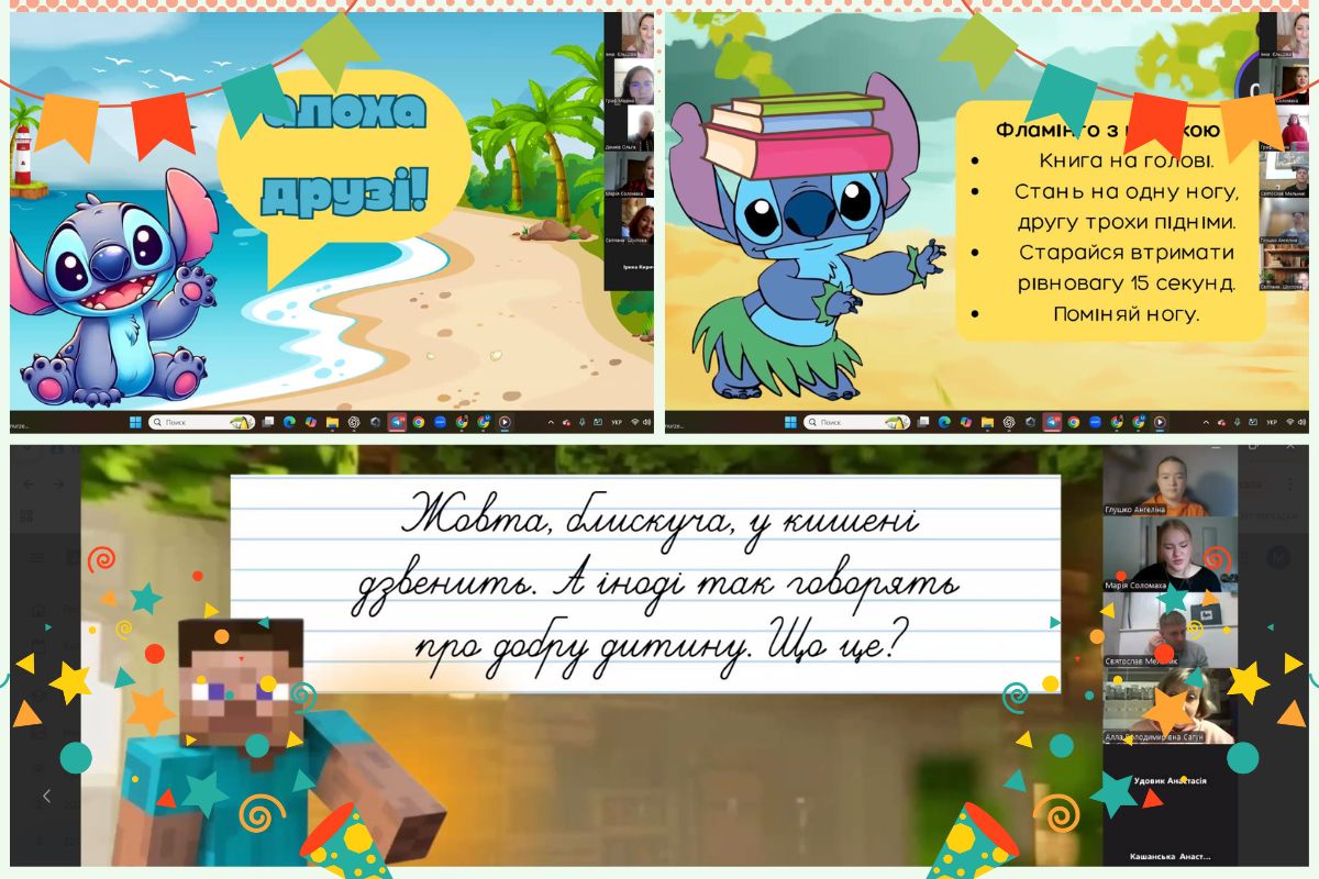 Марія Соломаха розповідає про свої перші уроки під час педагогічної практики: «У 2 класі ми спробували новий формат фізкультури — йогу разом зі Стічем. Діти пробували прості асани, вправи на розтягування та рівновагу, а ще тренували спину, балансуючи книжкою на голові. Це було весело і корисно одночасно».