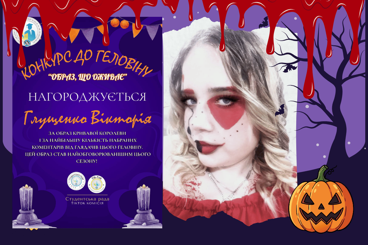 У коледжі відбувся онлайн-конкурс «Образ, що оживає», який об’єднав креативних, сміливих і творчих студентів навколо геловінських перевтілень. Учасники представили свої роботи на онлайн-платформах, а переможницю визначили за результатами відкритого голосування — усе вирішили вподобання, коментарі та активність глядачів.