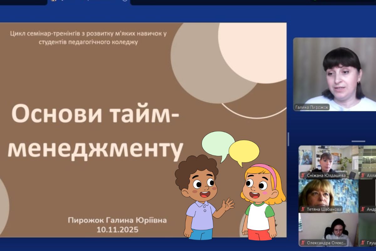 10 листопада для студентів педагогічного коледжу відбувся практичний семінар-тренінг «Основи тайм-менеджменту». Учасники вчилися керувати власним часом — однією з ключових «м’яких навичок» (soft skills), яка допомагає майбутнім освітянам уникати стресу та ефективно поєднувати навчання з особистим життям.