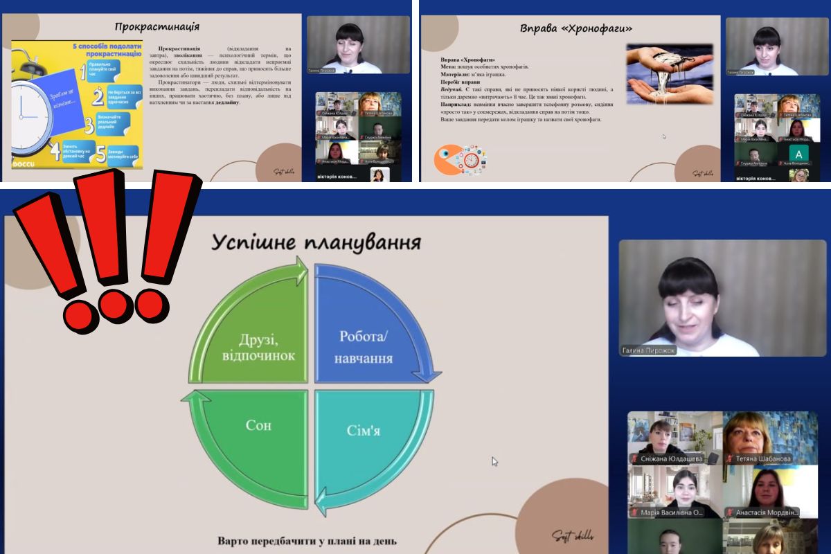 Окрему увагу приділили боротьбі з прокрастинацією та аналізу «хронофагів» — поглиначів часу, які заважають продуктивній роботі. Студенти не лише розібрали теорію, а й одразу спробували застосувати ці техніки для планування свого робочого дня.